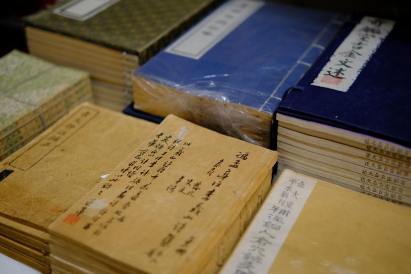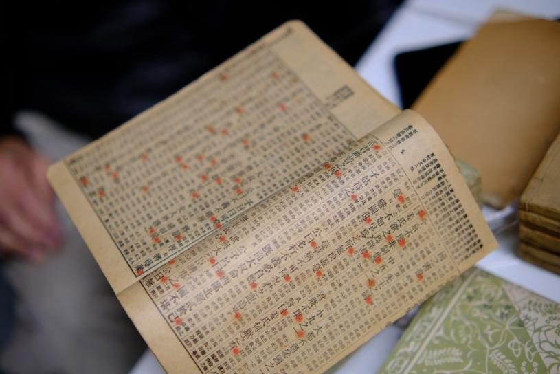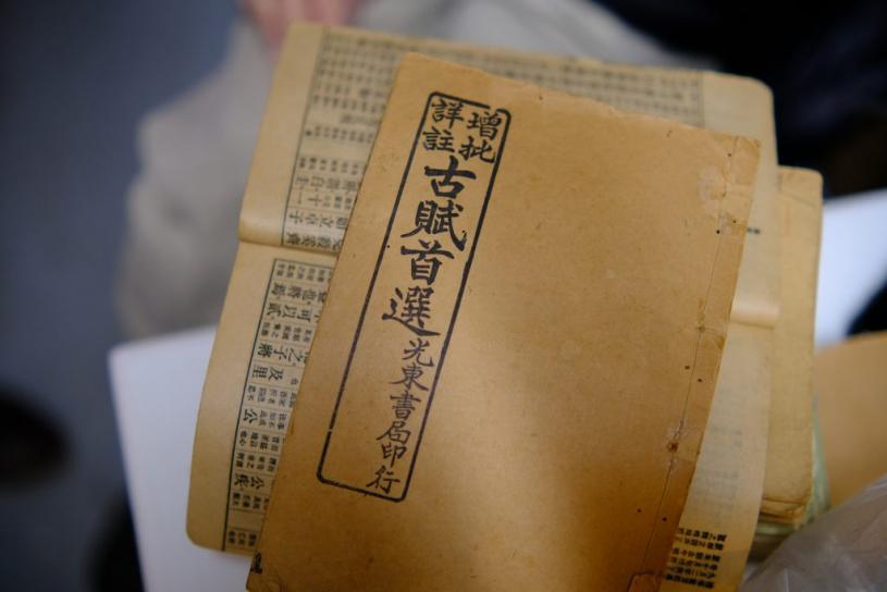 其中一本收藏书籍印有“光东书局印行”,是民初时期出版书籍。(何逸蓓摄)