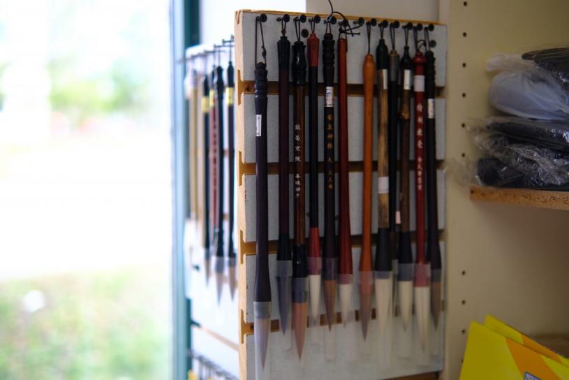 三益书店卖毛笔等副产品,以维持收入。(何逸蓓摄)