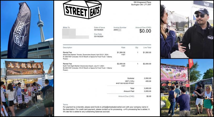 张先生去年共收到Street Eats Market七次美食节活动邀请,惟其中四个遭取消,包括多伦多的“Street Eats Expo”、“North York Night Market”及“CN Tower”活动;以及在Burlington举行的“Longest Dinner Table”,张先生估计,四次活动所收取的报名费总额或高达数十万元。