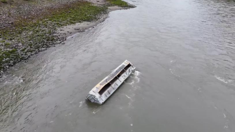 从网上影片所见,一列车卡在菲沙河边的山崖上翻倒并掉落到河中,多个车卡被淹在水中或沉没。