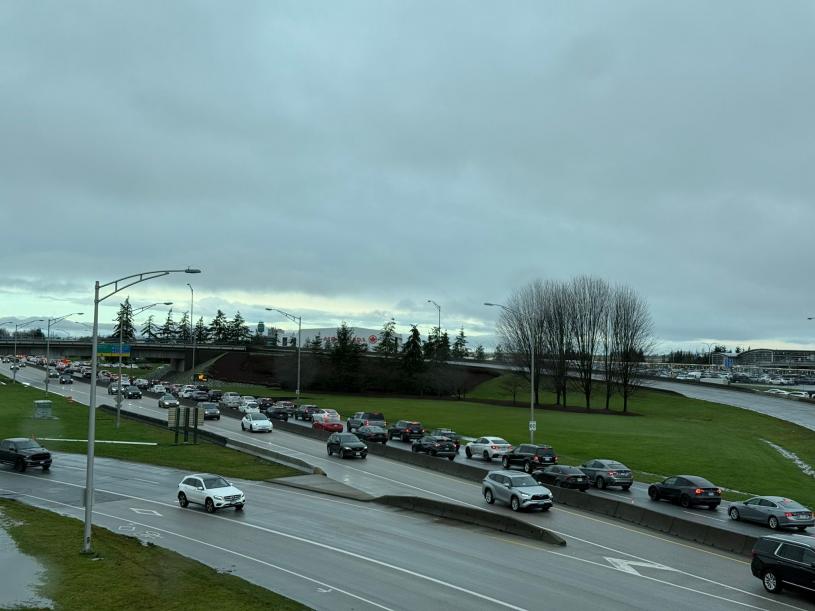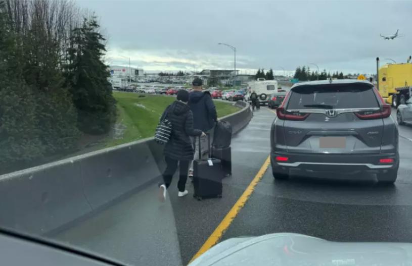 【星岛记者陈仪芬报道】大温哥华民众不想错过节礼日优惠,纷纷前往各大购物中心,机场 McArthurGlen Outlet 一向是消费者青睐之地,大批车潮挤爆机场沿线,导致赶飞机的旅客高度紧张,有旅客干脆提早下车,沿着高速公路走进机场大厦。