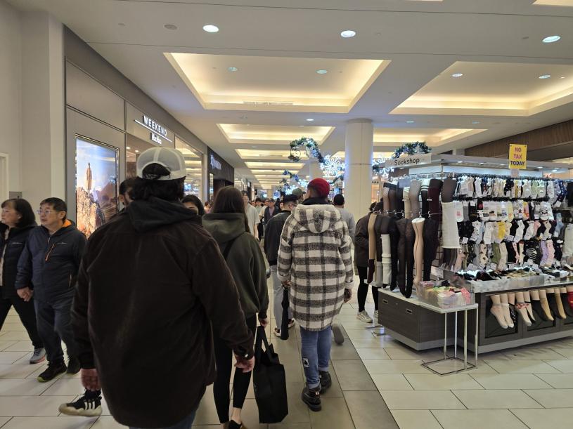 李女士和朋友选择一大早就到本拿比铁道镇购物中心采买,她说:“我们 8 点半就来了,当时外面还倾盆大雨,所以购物中心人很少,但是接近中午时已经很拥挤了。”