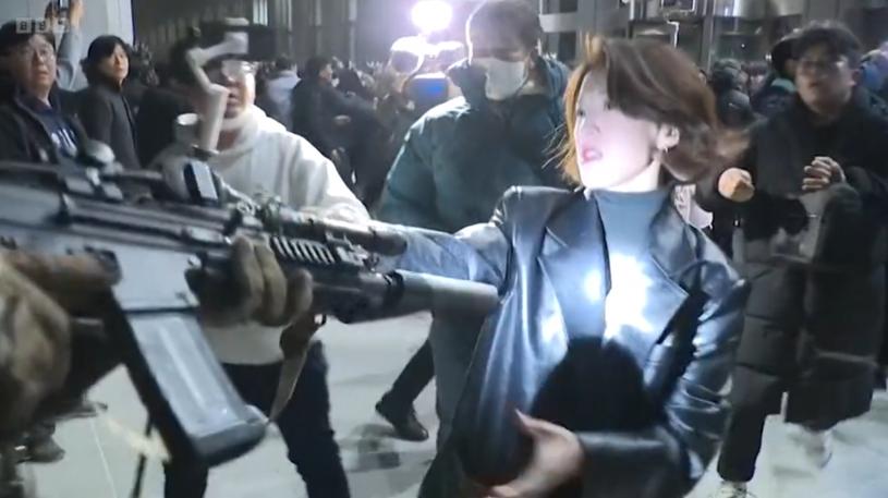 戒嚴令下南韓女主播一手擋槍影像令人深刻。