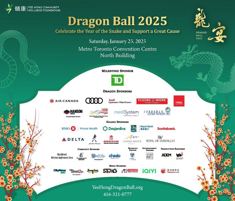 “龙宴”晚宴门票为每位$750,贵宾票定价每位$950。购票详情,请浏览 www.YeeHongDragonBall.org,或致电颐康基金会416-321-0777。