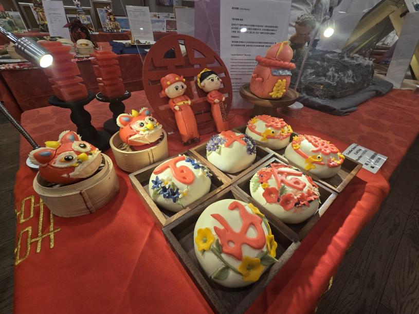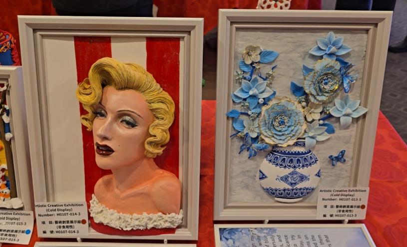 走进竞技大赛会场,可以看见参赛厨师精致的艺术作品,包括翻糖设计作品、手工创意烘培、中式凉菜热炒、调酒饮品等,无一不展现独特巧思。尤其是翻糖作品,可能要花上好几天或几个月的时间才能完成,无论是花鸟、人物等现实世界的描绘,个个栩栩如生,就算能食用,也令人不忍动口。