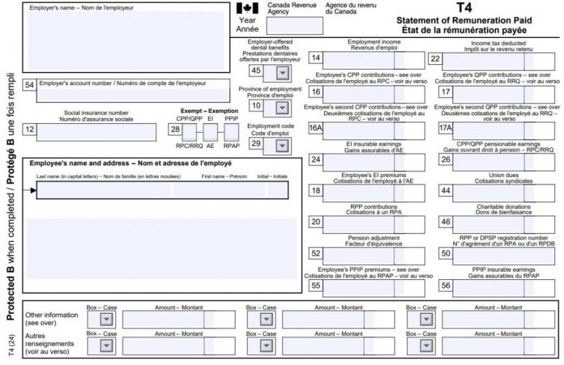 - 税务居民收到T4后需要核对社会保险号码(Social Insurance Number)、姓名、地址等个人资料。