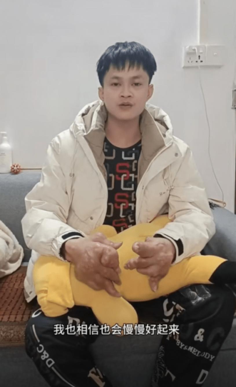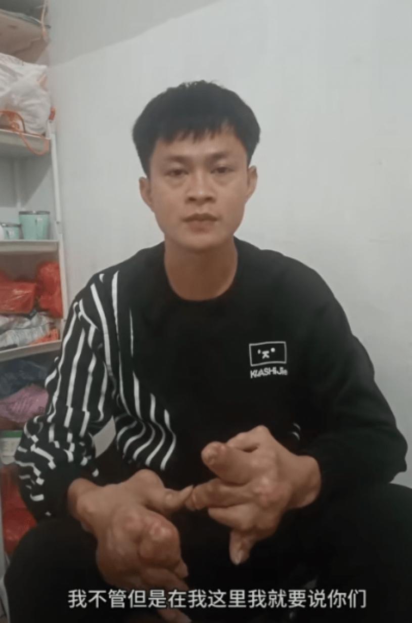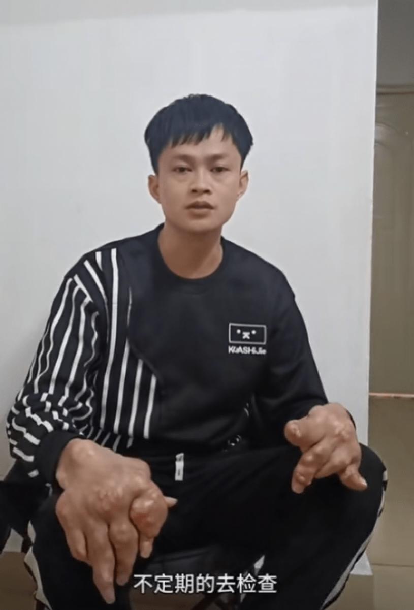 現時,他手腳關節內長出痛風石,而手部因痛風石數量較多。(圖片來源:抖音「藍弟日常生活」)