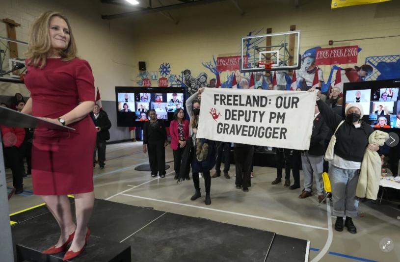 Here’s a video of all the protest disruptions at Freeland’s Liberal leadership launch.