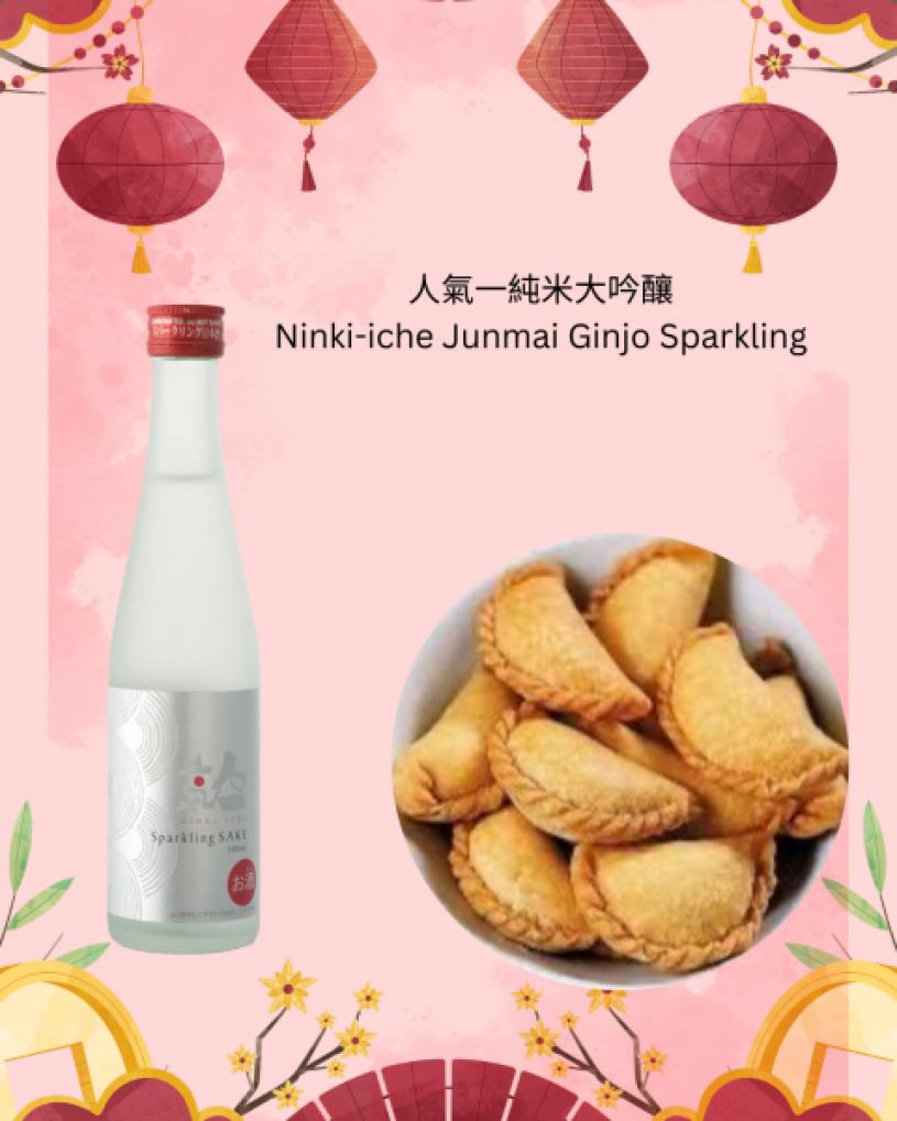首先当然是炸物例如油角,笑口枣和蛋散等等,一支有气的清酒能够清除口中的油腻感觉,原理和气泡葡萄酒一样。人气一纯米大吟酿(Ninki-iche Junmai Ginjo Sparkling) 的气泡清爽又带点微碳酸口感,而酒的微甜味和油角中的糖和花生配合更能带出香味。