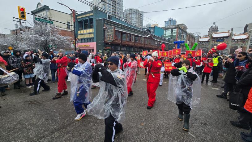 【星岛记者陈仪芬报道】农历新春大游行是温哥华庆祝农历年最盛大的活动,尽管星期天的大温哥华垄罩在一片雨雪中,但依然未浇熄民众的热情,数万人在街头伫立,观看近百个组织各式各样的热闹游行,欢庆迎蛇年。