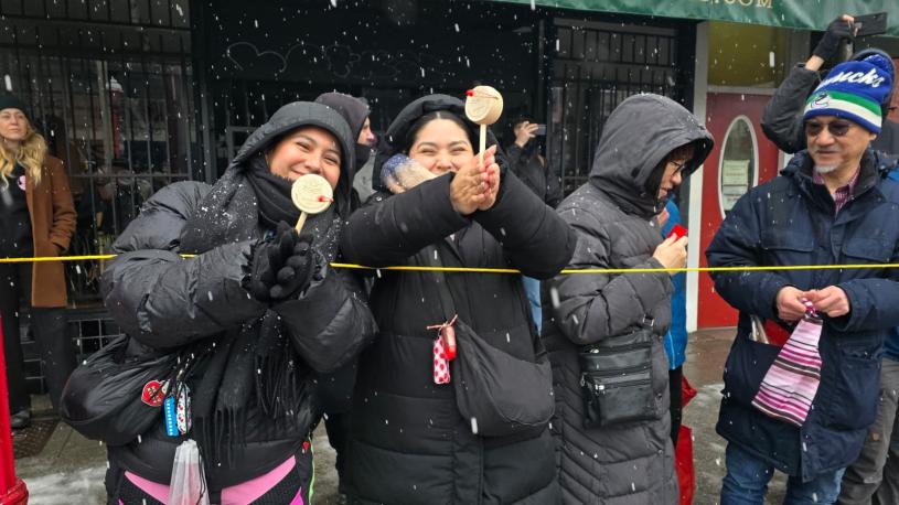温哥华华埠春节日会总监、温哥华中华会馆理事长钱华很开心众人来参加游行,说:“今天是接财神的好日子,外面下著大雪,寓意瑞雪兆丰年。”