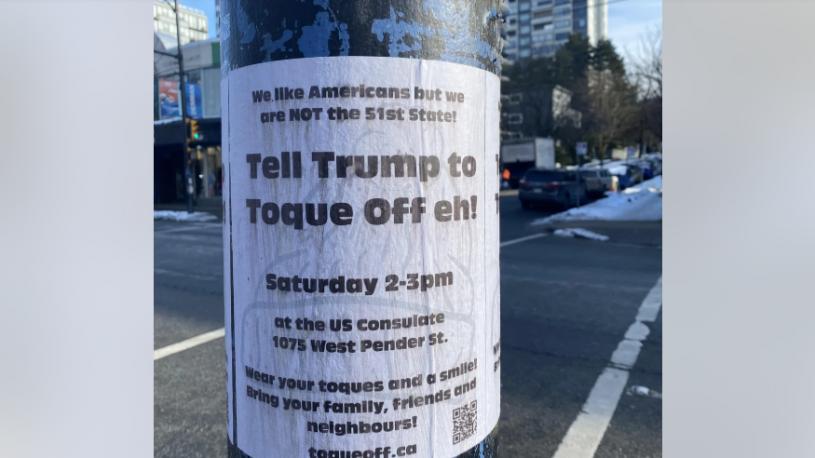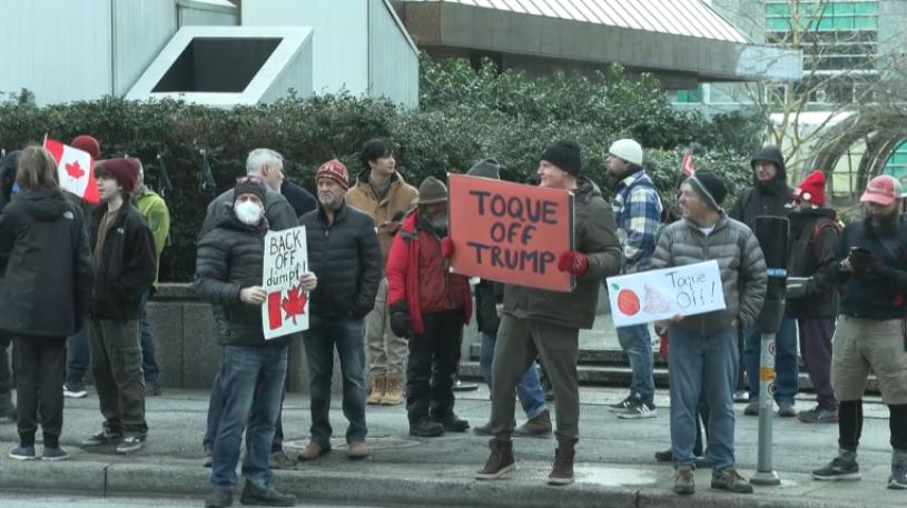 面对特朗普威胁要对加拿大产品征收关税,以及他日前发出使加拿大成为美国第51州的言论,抗议团体组织了“叫特朗普滚开”(Tell Trump to Toque Off )集会,并呼吁建立一个“强大、独立的加拿大”。