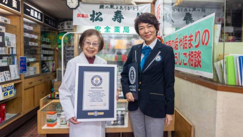全球最長壽藥劑師幡本圭左(左)(圖片來源:Guinness World Record)