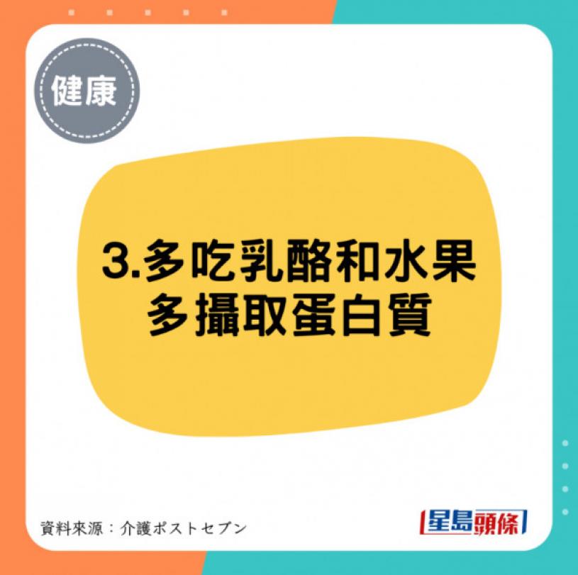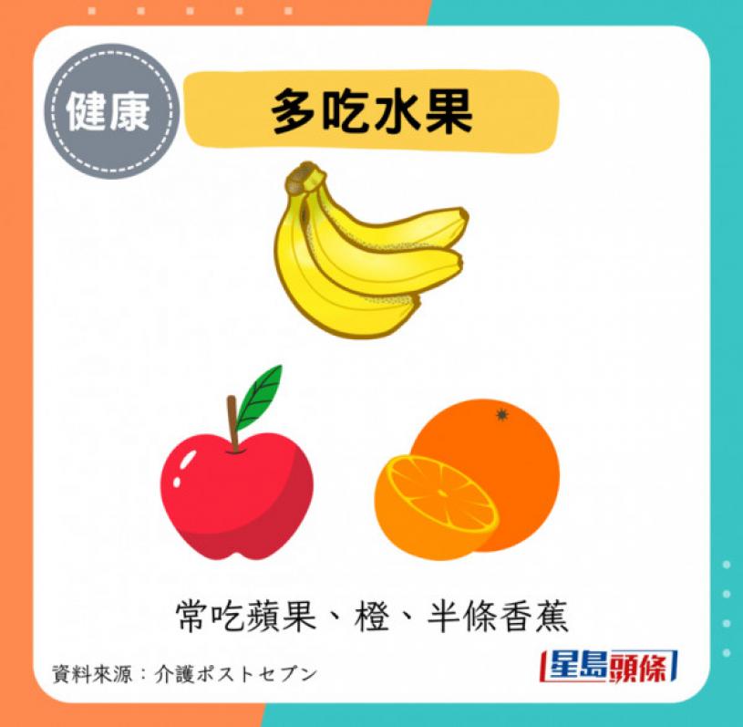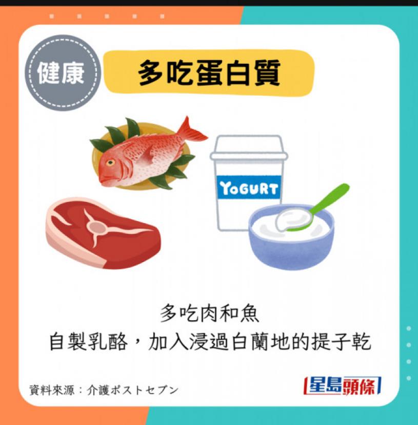 此外,她還多吃含蛋白質食物,例如肉和魚;還會自製乳酪,加入浸過白蘭地的提子乾,再添加一小匙白蘭地。水果方面,平常會吃蘋果、橙、半條香蕉。