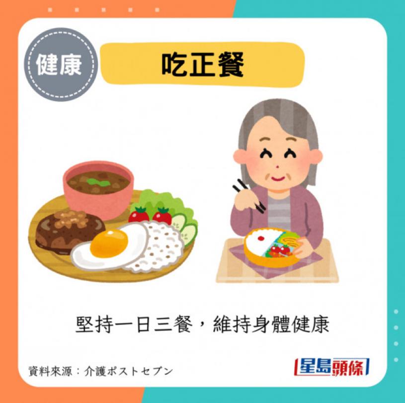 幡本圭左表示,一定要吃正餐,她堅持一日三餐,維持身體健康。女兒會為她準備的飯菜,讓她能夠享受美味的食物。