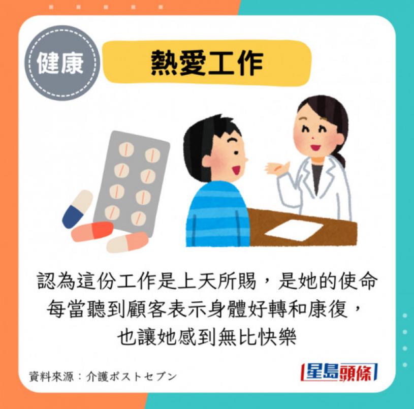 做著自己喜歡的工作,就是長壽秘訣之一?綜合日媒報道,幡本圭左接受訪問時直言,藥劑師的工作就是她活著的意義。從事藥劑師工作70多年,幡本圭左承認熱愛工作,並認為這份工作是上天所賜的,是她的使命。每當聽到顧客表示身體好轉和康復,向她表達謝意時,也讓她感到無比快樂。