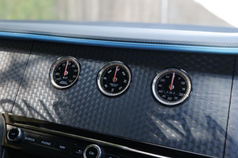 全新宾利Bentley Continental GT Speed中控台三个旋转面板包括12.3寸触屏及图中三圆指针式仪表。