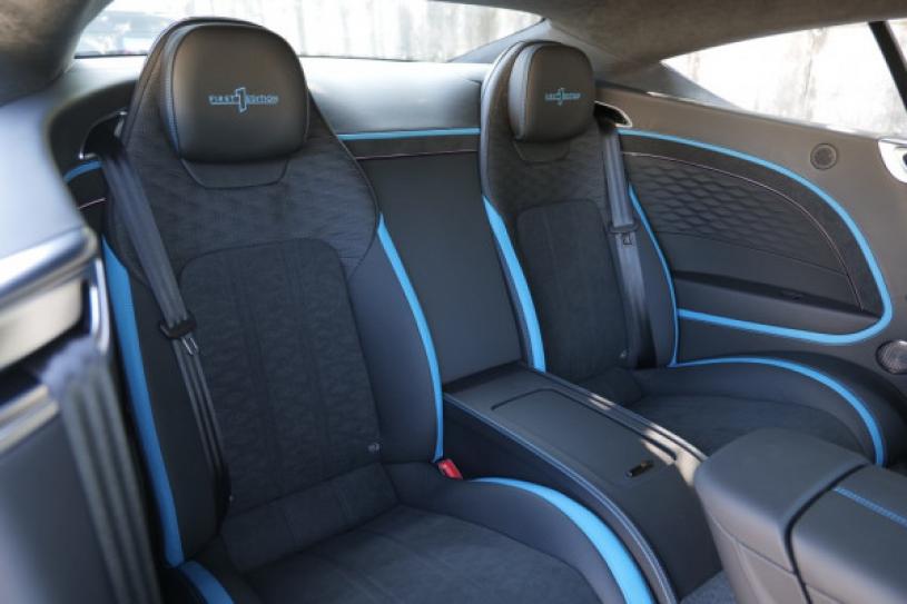 全新宾利Bentley Continental GT Speed后排有足够空间舒适乘载两名成人,头枕有1st Edition字样。