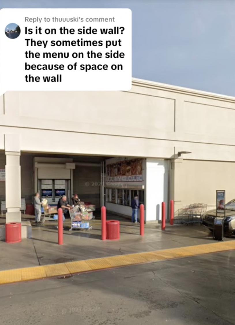 然后她又上传了一段影片,展示了之前同一家店美食广场柜台上方的海报菜单,她称这是她在谷歌上找到的两年前的照片。在那张图中,热狗被清晰地展示在一个高大的百事品牌杯子旁边。