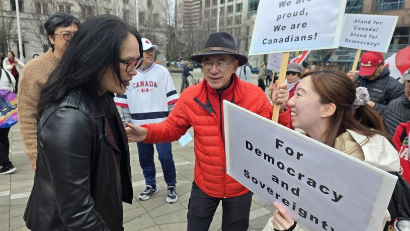 【星島記者陳儀芬報道】美國關稅即將來襲,一項致力於推動反極權專政的溫哥華支聯會和全球菲律賓僑民協會(Gloal Pinoy Diaspora Canada)共同主辦「拒絕美國第51州、力撐加拿大主權」的集會。國會議員關慧貞 (Jenny Kwan) 和札里羅 (Bonita Zarillo) 出席活動時強調,不買美國貨、不赴美旅遊,人人都可以用簡單卻堅定的方式展現愛國心。