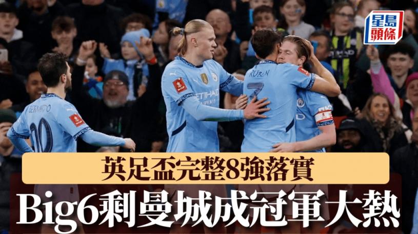 隨著諾定咸森林於周一淘汰葉士域治後,英格蘭足總盃第5圈賽事已全部完成,代表完整8強對決落實。今屆多支豪門相繼出局,傳統Big6球隊只剩曼城一隊,因而成冠軍大熱。另外要留意,8強中有半數未曾奪冠,故隨時有新王者誕生。