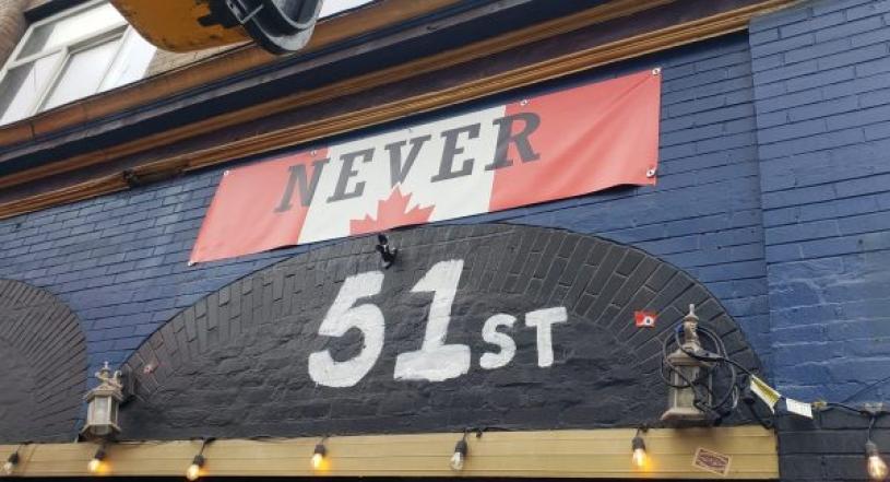 【星岛综合报道】特朗普屡次表示加拿大应成为美国的“第51个州”,引起不少加拿大人不满,然而也可能有人支持。温哥华一间酒吧在店外挂起写上“永不成为第51州”的加拿大国旗,近日遭人毁坏。