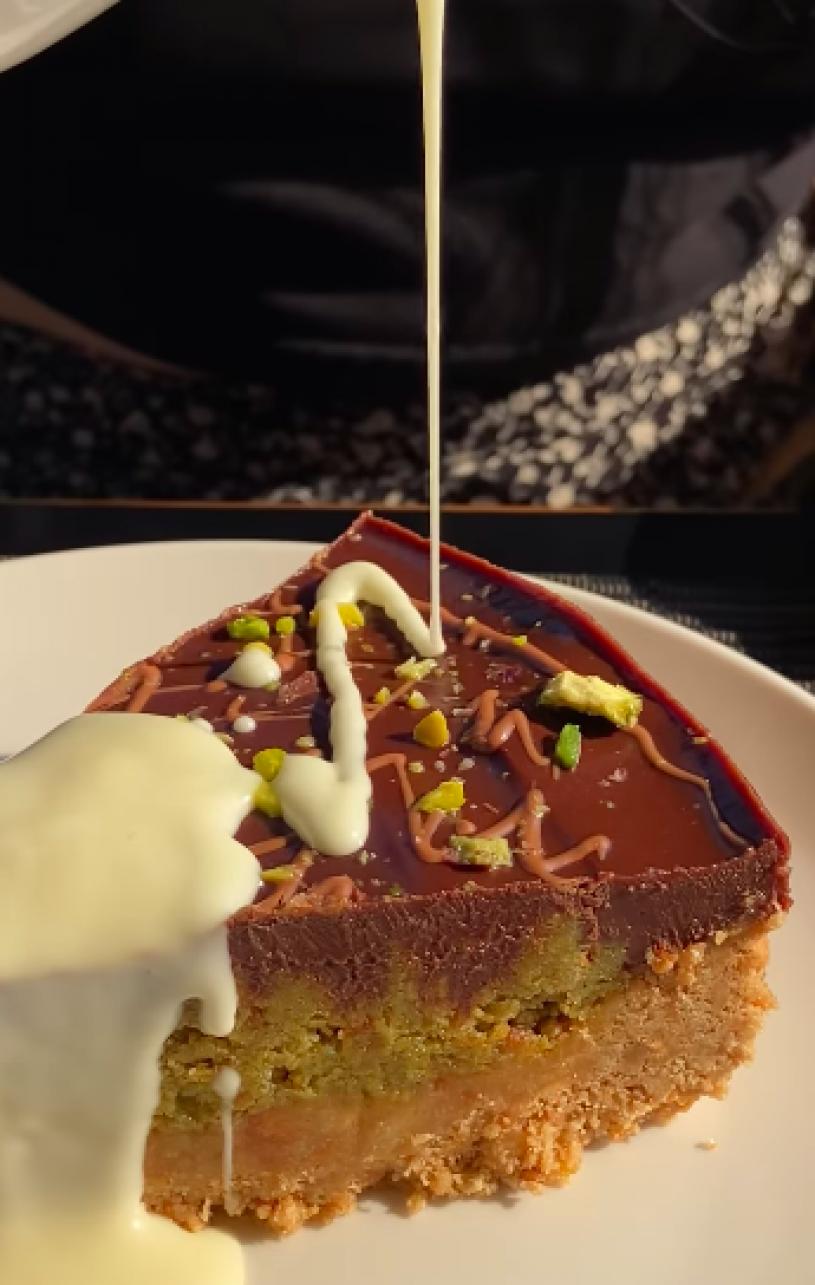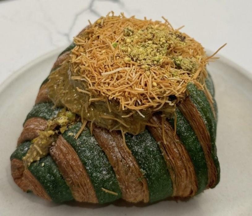另一款Kunafa干酪蛋糕也值得一尝!Kunafa是流传于中东与地中海东部的甜点味道,主要混有碎果仁,并包里著奶油,沉浸在芬芳的糖浆中,口感丰富而甜而不腻,深受中东人喜爱。