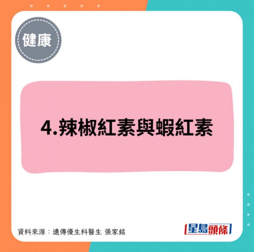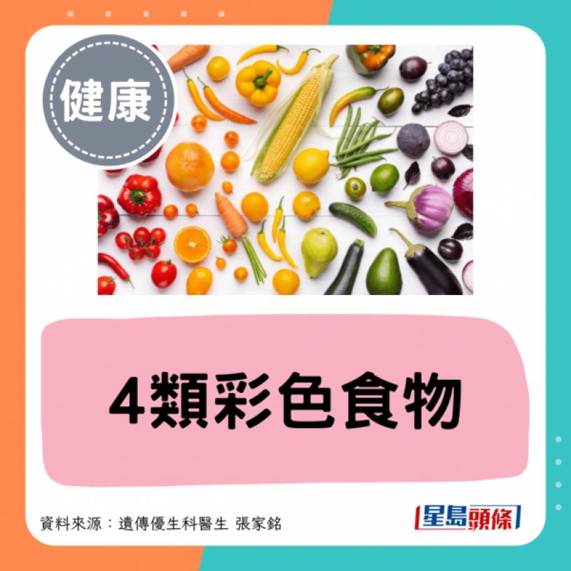 有研究發現,吃健康的食物不只是可以補充營養,還能改變腸道菌群,有助身體進行代謝,讓脂肪不輕易堆積。天然食物中的「類胡蘿蔔素」,讓食物呈現多種顏色的天然色素,能幫助調整腸道微生物,讓身體的脂肪燃燒效率更高,發炎反應更低,代謝也更穩定。他講解4種顏色食物營養與功效,並列舉多種食物例子。