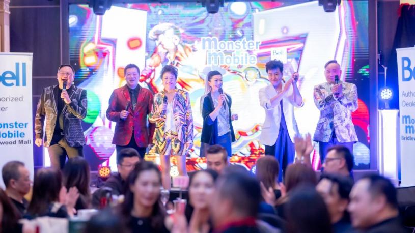STMG行政總裁黃安信(左)與冠名贊助Bridlewood Mall Bell Monster Mobile代表Vincent Wan(右)合照,答謝多年對星島A1中文電台的支持。