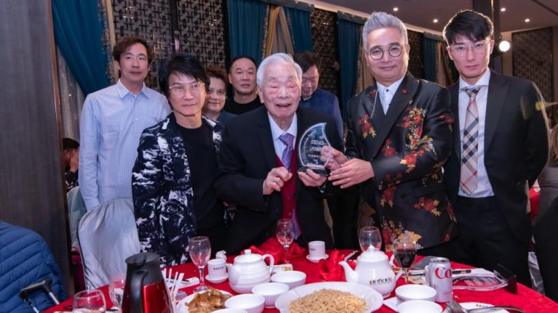 今年大會增設「STMG專業精神獎」,由STMG行政總裁黃安信(右二)頒獎予首屆得獎者——皇后名粥集團及其創辦人陳錦(右三),以表揚其對業界的貢獻。皇后名粥集團負責人Peter Cheung(左一)與代表Max Cheung(右一)及集團成員一同留影。