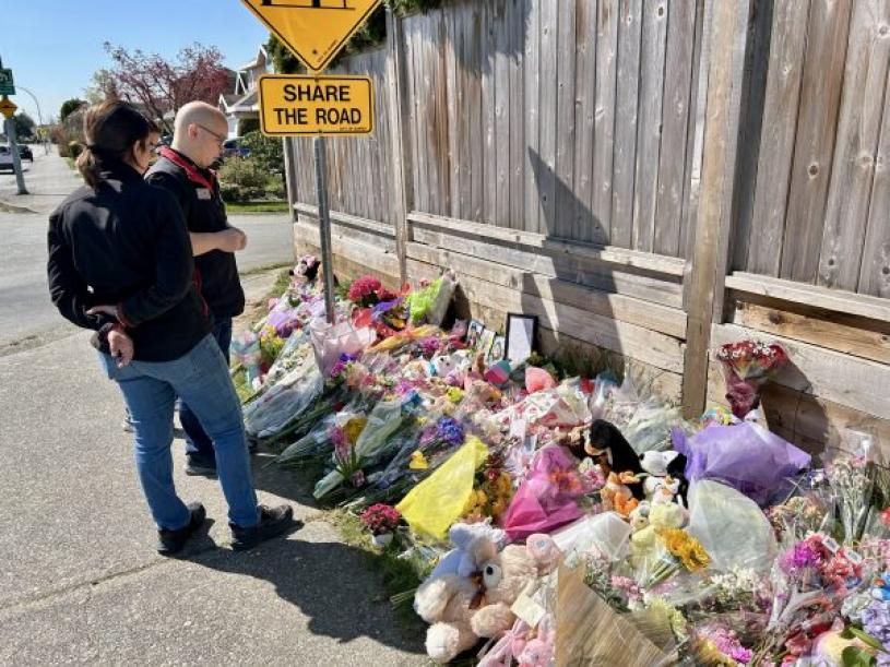 【星岛记者报道】张小妹妹Jayla Chang只有6岁,她于周日(13日)在素里遭车撞倒不幸死亡,肇事司机不顾而去,事件震惊俗称“台湾村”的菲沙高地(Fraser Heights),社区人士纷纷前往车祸现场致哀,并要求警方尽快查明真相。