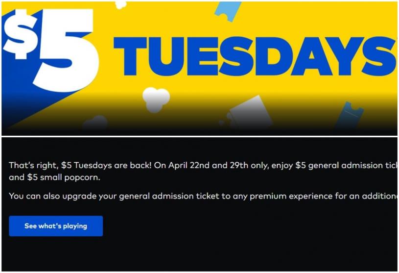【星岛综合报道】Cineplex 5元戏飞优惠又出现!明天(22日)及29日,指定顾客可用5元购买电影票,或用5元购买细爆谷。