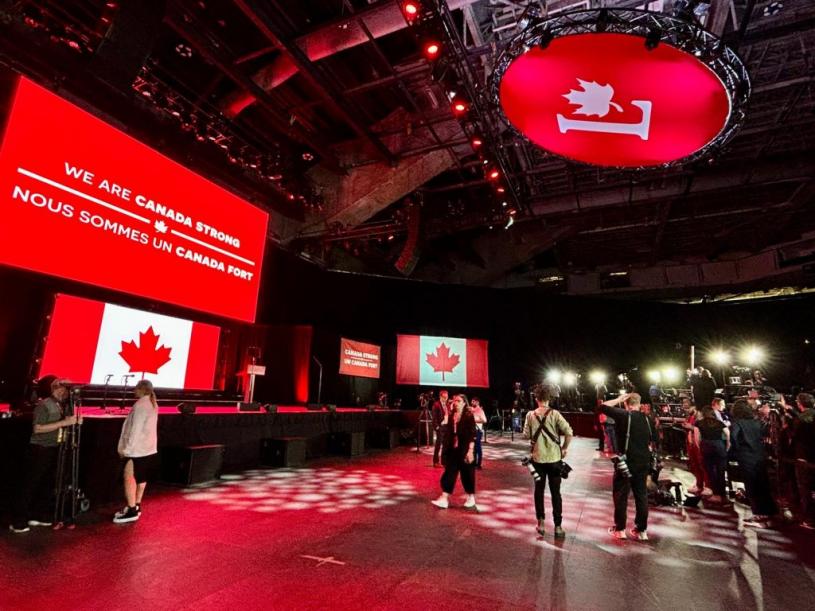 《星岛》特派记者黄忆欣晚上在渥太华自由党选情之夜TD Place Arena现场连线报道。