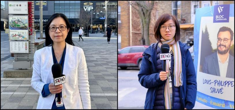 记者黄忆欣(左)、何逸蓓在(右)渥太华连线报道