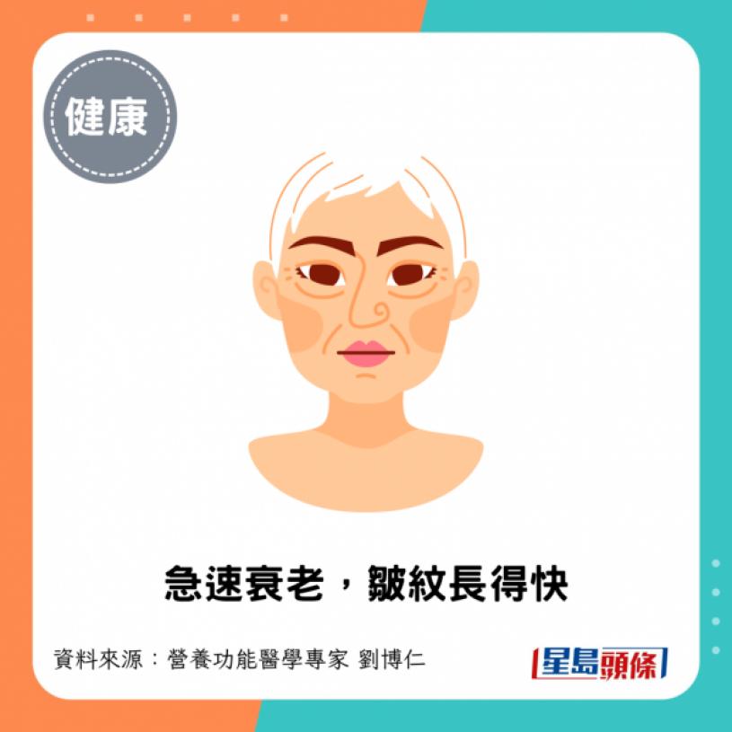 營養功能醫學專家劉博仁醫生在《57健康同學會》節目分享上述病例指,該名男子雖然年僅35歲,但身型肥胖,臉上滿佈皺紋,出現大量脫髮。經檢查後,更證實患上糖尿病及重度脂肪肝,而且三酸甘油脂水平及身體發炎指數都偏高。