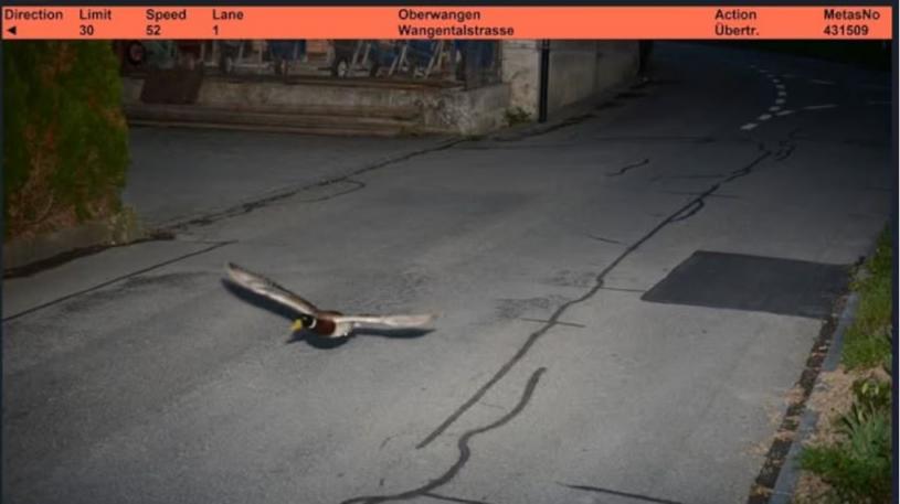 【星岛综合报道】超速的未必是车,可能是绿头鸭?瑞士警方在社交媒体上表示,早前首都附近Koniz小镇的测速镜头录得超速案件,翻查“快相”后,发现超速的竟然是一只绿头鸭。据称这只绿头鸭是当地超速“惯犯”。
