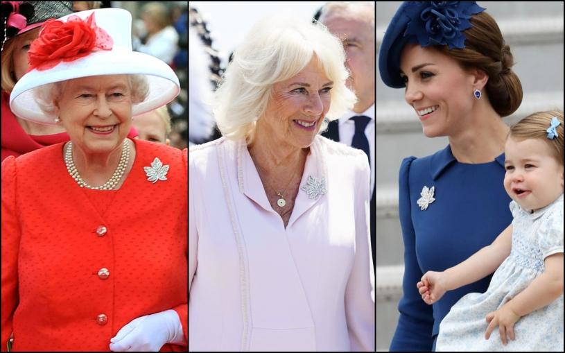 而在2011年,當時的劍橋公爵夫婦威廉王子及凱特王妃、現任王儲夫婦結婚兩個月後首次訪加,凱特在渥太華亮相時佩戴這枚胸針,配以Sylvia Fletcher設計的紅色楓葉帽。5年後兩人偕同兒女佐治小王子及夏洛特小公主再訪加拿大,凱特王妃抵達維多利亞時再度佩戴此胸針,並配以藍色Sylvia Fletcher帽。