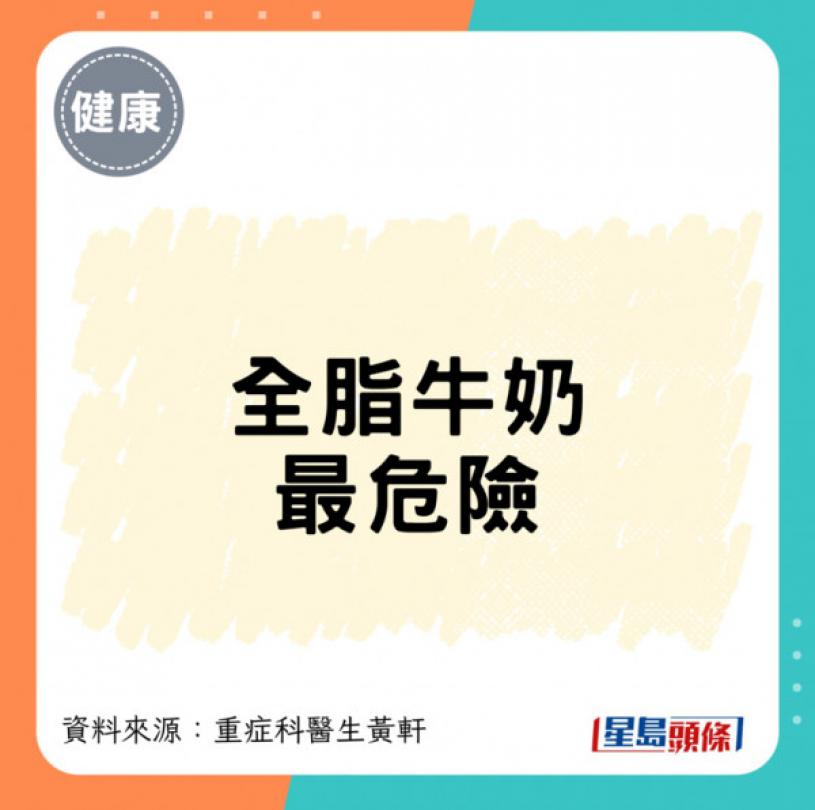 但黃醫生強調全脂奶/高脂乳製品仍是最危險選擇,潛在原因包括: