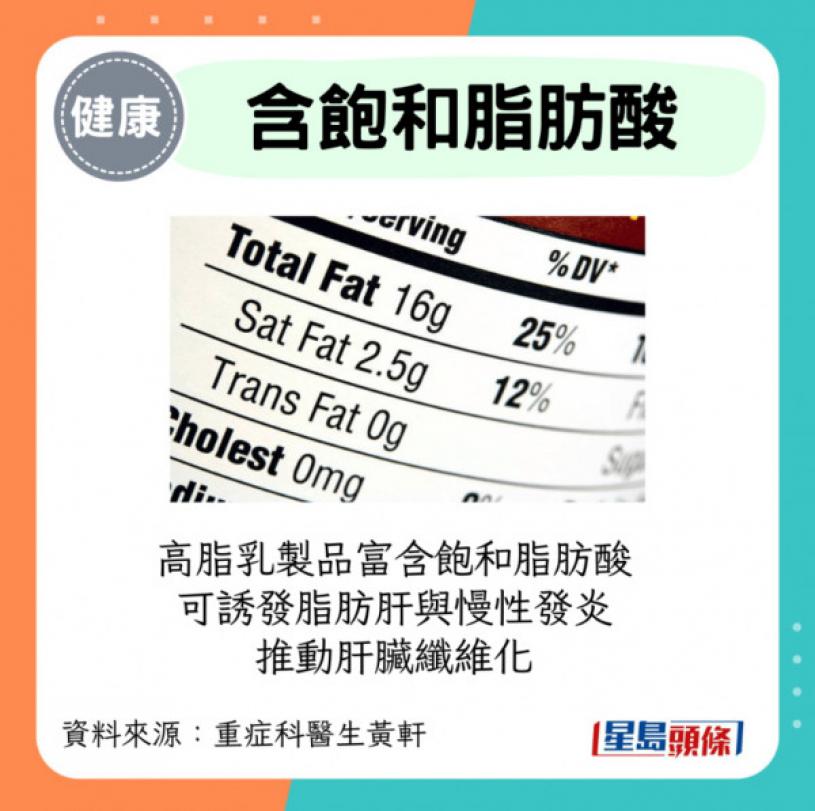 2.高脂乳製品富含飽和脂肪酸,可誘發脂肪肝與慢性發炎,推動肝臟纖維化。