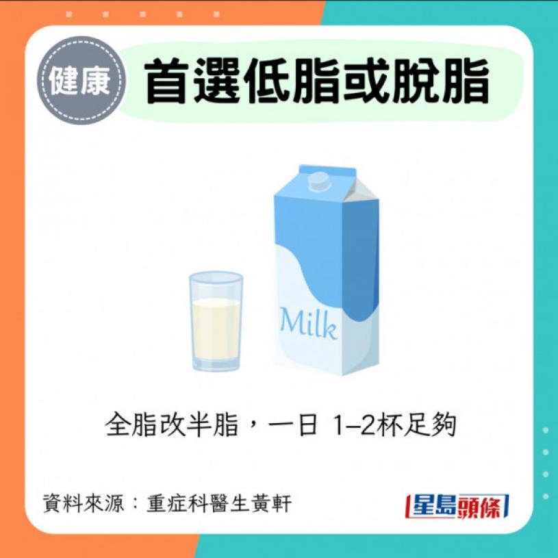 ·首選低脂或脫脂:全脂改半脂,一日 1–2杯足夠。