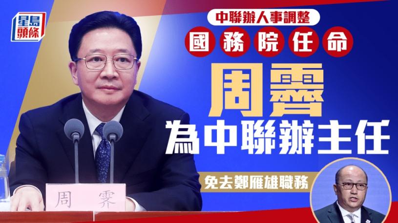 香港中联办出现重大人事调整。官方宣布,中央港澳办常务副主任周霁担任香港中联办主任,郑雁雄不再担任香港中联办主任。