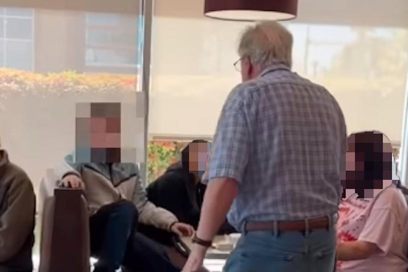 一群每月都会在这家咖啡店聚会的长者们,对影片中男子的行为感到震惊和不满。