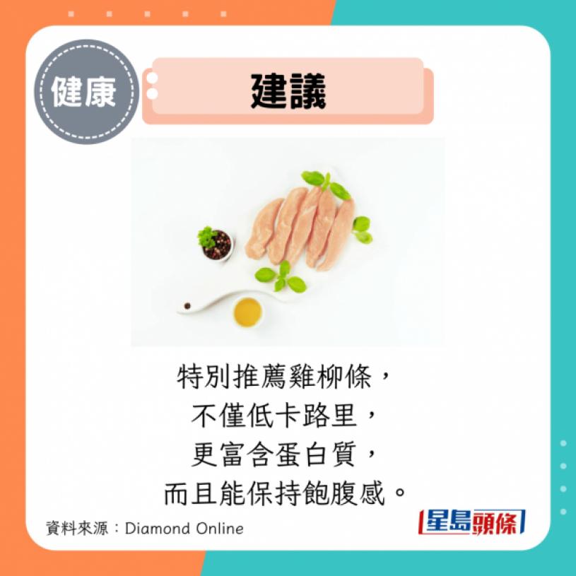 與其強忍飢餓導致後續暴飲暴食,不如適度補充健康零食。大平哲也特別推薦即食雞胸肉,不只低卡路里,更富含蛋白質,而且能保持飽腹感。