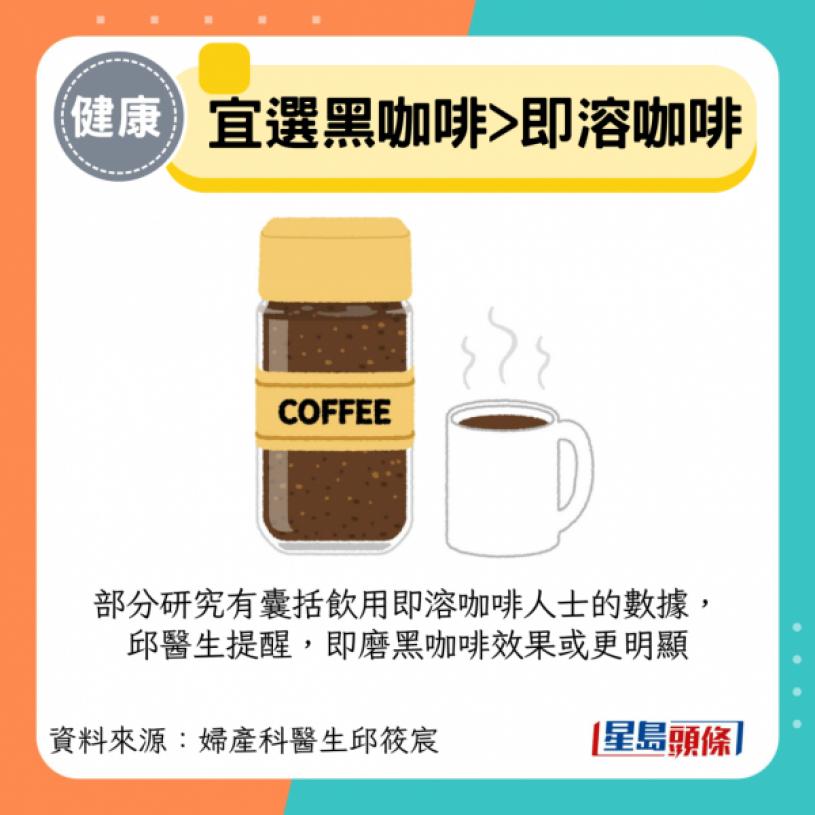 邱醫生建議最好每日1-3杯黑咖啡、每杯約200-300ml。不建議「暴飲」咖啡或以咖啡代餐,要注意過量喝咖啡,因可能導致心慌、駝背等後果。