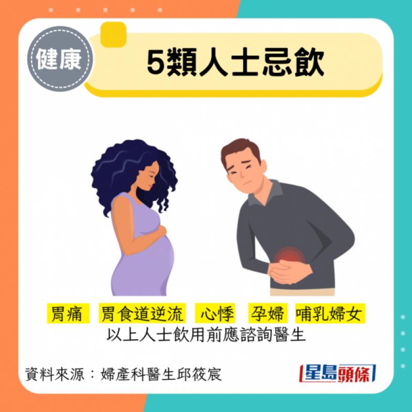有胃痛、胃食道逆流、心悸、孕婦或哺乳婦女,飲用咖啡前應先諮詢醫生。