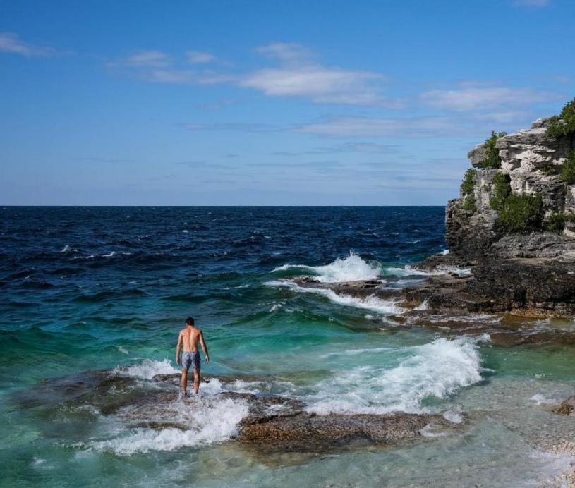 由多倫多出發向北行約3.5小時,即可到達擁有絕美石灰岩海岸線的Bruce Peninsula National Park。園內的Grotto水洞以清澈見底的湖水著稱,是攝影及游泳勝地。鄰近小鎮Tobermory可搭乘玻璃底船參觀沉船遺跡或前往花瓶島探險,是適合露營及自然探索的理想地點。