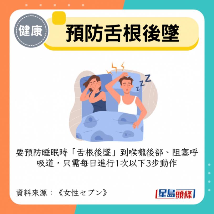 不少港人都有打鼻鼾問題,不過常打鼻鼾不隻影響睡眠質素,甚至會增加患心臟病、中風等重大疾病的風險,有機會危及生命。有醫生建議,要改善打鼻鼾問題,在日常生活中竟然只需多動舌頭就有效?