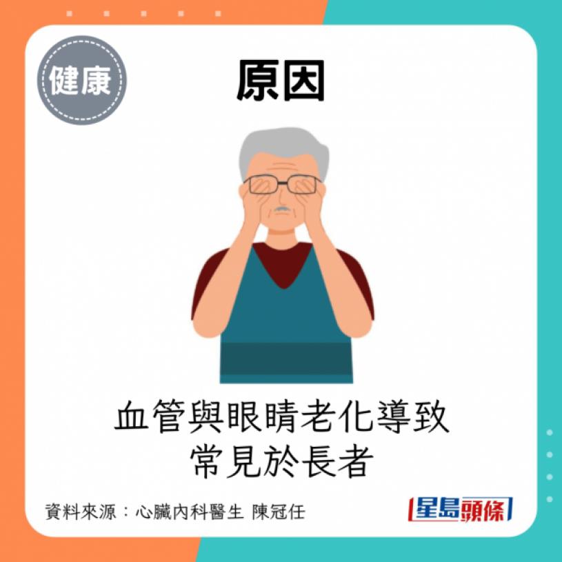 - 原因:血管與眼睛老化導致,常見於長者