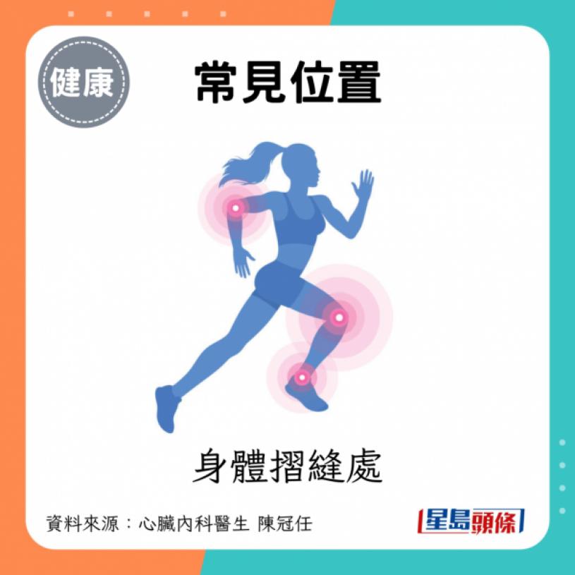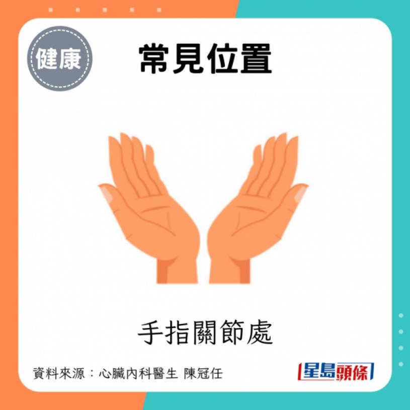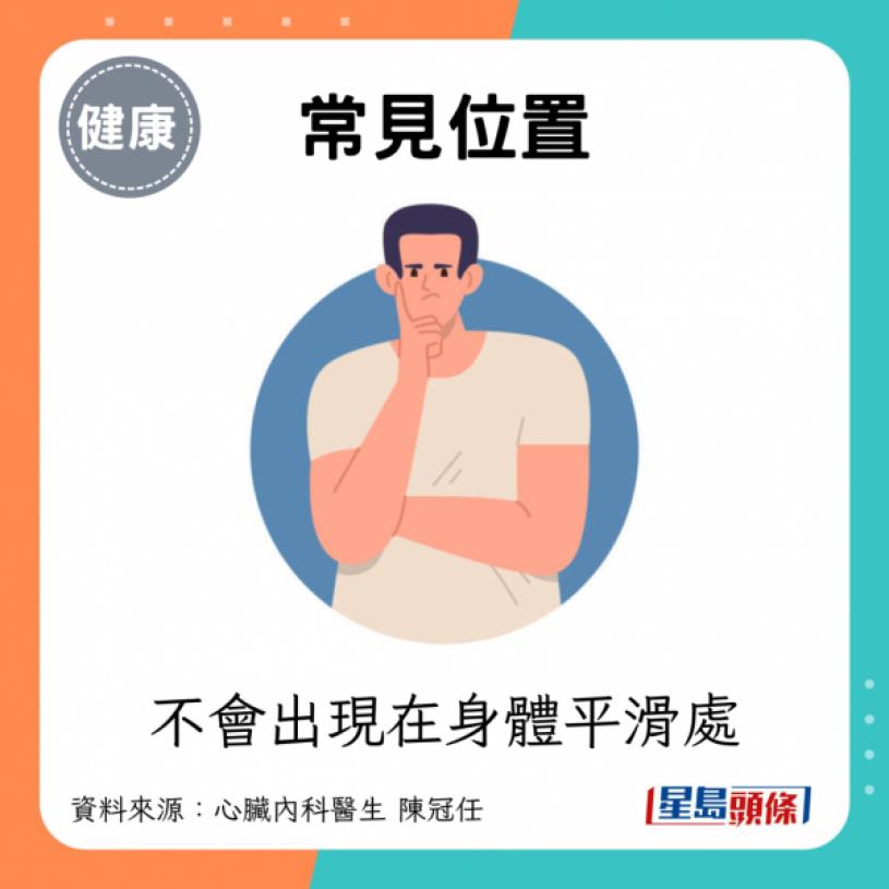 - 常見位置:手指關節處、身體摺縫處,不會出現在身體平滑處