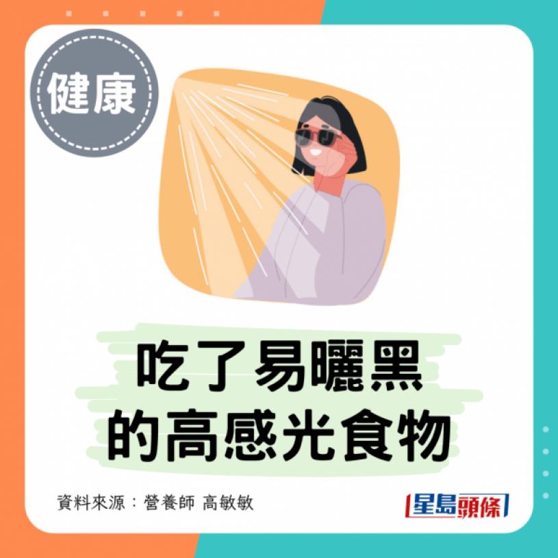 皮膚會不會被曬黑,不只是看防曬有否做足。營養師高敏敏在Facebook撰文指,吃進去的食物原來都會影響防曬。特別是本身屬光敏感體質的人,每日吃大量高感光食物,加上接觸猛烈陽光,3大因素加起來很可能增加黑色素沉澱,令肌膚變得暗沉,膚色變黑好幾度。